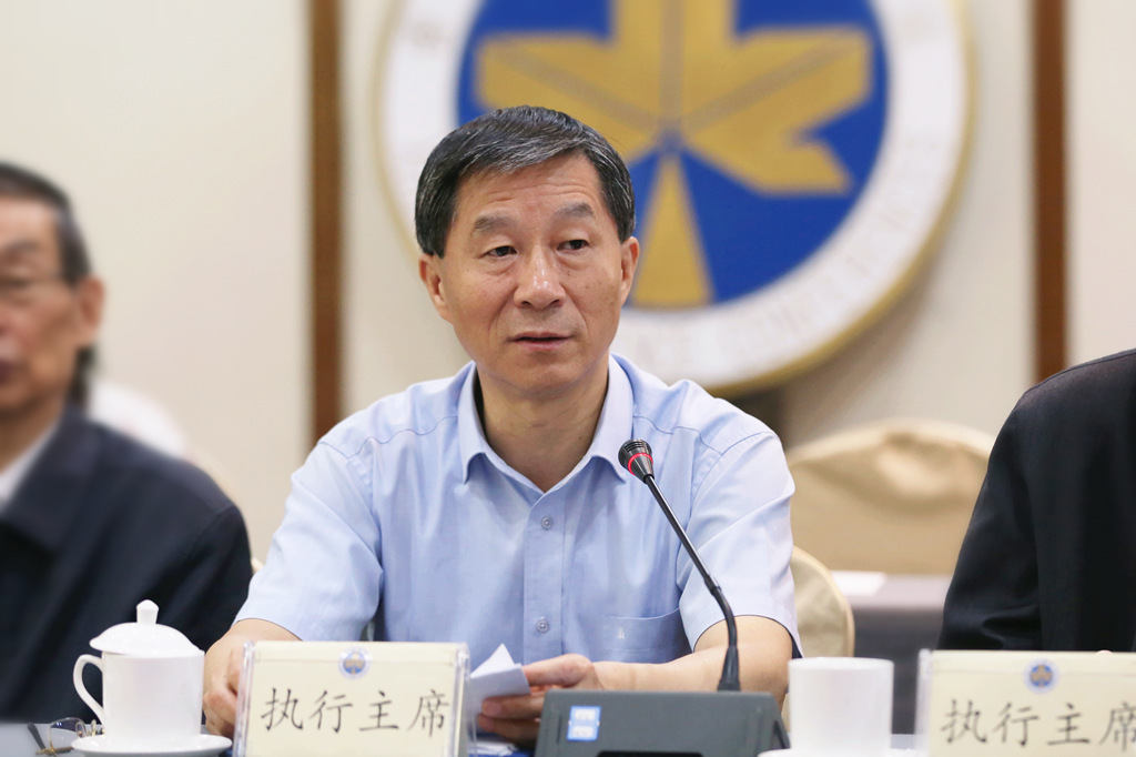 2018年9月17日,第S44次香山科学会议在北京成功召开。图为执行主席傅伯杰教授、孙九林研究员、曹卫星教授、郭仁忠教授和康绍忠教授在主持会议(从左到右)。