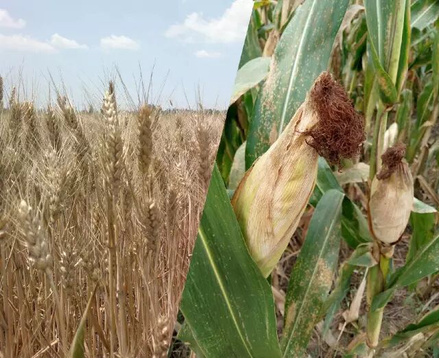 跟往年一样,我今年共生产了两季作物,一季是小麦,一季是玉米。其中,小麦的产量是800斤,比去年增产30斤,玉米产量是1700斤,比去年减产100斤。